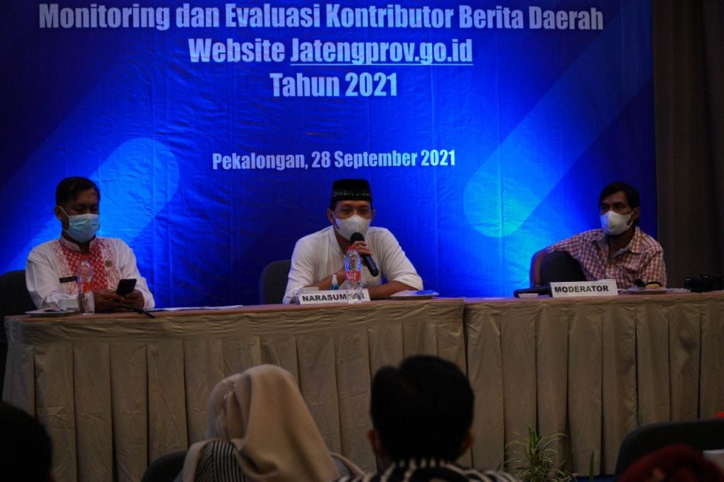 Hal itu ditekankan Kepala Dinas Komunikasi dan Informatika Provinsi Jawa Tengah, Riena Retnaningrum, saat membuka secara daring Monitoring dan Evaluasi Kontributor Berita Daerah pada 28 September 2021. Peserta kegiatan yang merupakan kontributor berita daerah mengikuti kegiatan di Hotel Santika Pekalongan, dengan protokol kesehatan ketat. “Para kontributor Daerah untuk menyampaikan berita tentang Jawa Tengah secara lebih kasual,” papar Riena.