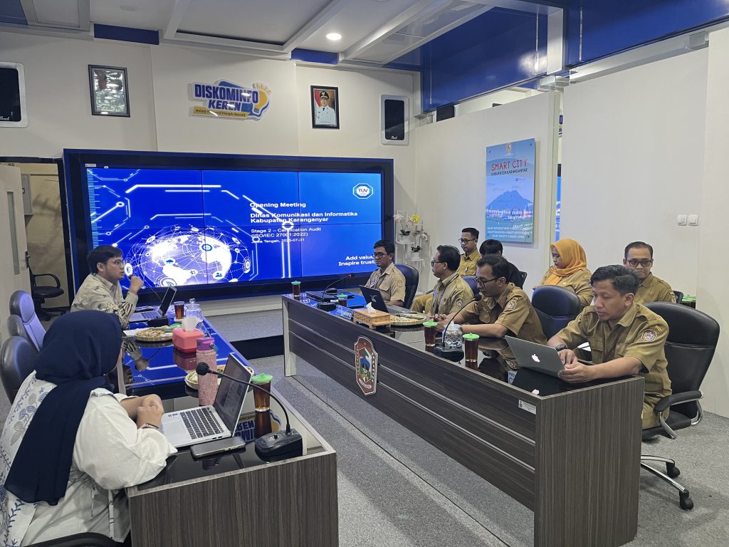 Karanganyar – Audit ISO/IEC 27001:2022 tahap 2 secara resmi dimulai pada hari Senin, 21 Juli 2025, melalui kegiatan opening meeting yang membahas ruang lingkup audit serta tahapan yang akan dilalui. Audit ini merupakan bagian penting dalam upaya memastikan implementasi sistem manajemen keamanan informasi (SMKI) berjalan sesuai standar internasional, yang rencana dilaksanakan selama 3 hari hingga Rabu mendatang.
