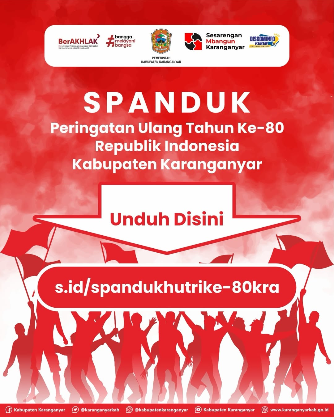 Spanduk Peringatan Ulang Tahun Ke-80 Republik Indonesia Kabupaten Karanganyar dapat di unduh di sini