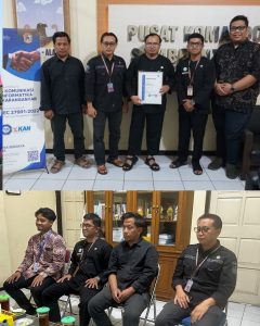 Dalam kesempatan tersebut, Herawan Saputra menyampaikan bahwa proses sertifikasi ISO telah melalui tahapan panjang, mulai dari magang audit, tindak lanjut hasil audit, hingga penerbitan sertifikat. Ia menekankan bahwa penerapan sistem keamanan informasi memerlukan *komitmen, perubahan kebiasaan, serta budaya kerja yang berkelanjutan.*